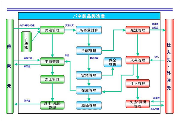 ASPAC-生産管理は生産管理システムだけではなく、受注から出荷・売上の販売管理システム および外注発注・材料発注から入荷・仕入までの購買管理システムまですべて含んでいるので、 基本は標準機能をベースとして使用することとし、必要な部分はカスタマイズすることになった。